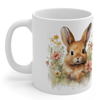 coffee mug features A Baby Bunny Sitting Amidst