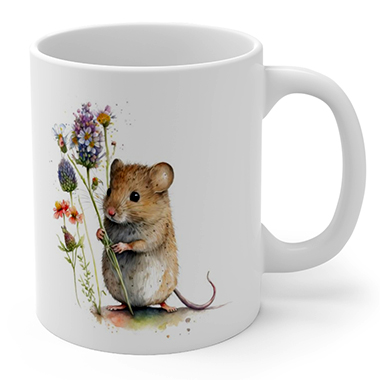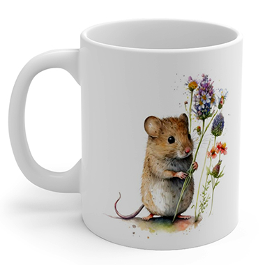 coffee mug features A Cute Mouse Holding Wild