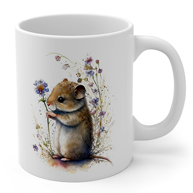 coffee mug features A Cute Mouse Holding Wild