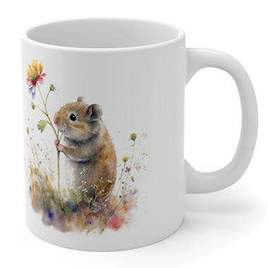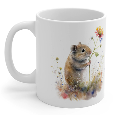 coffee mug features A Cute Mouse Holding Wild