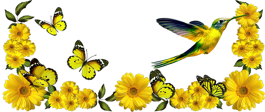 Hummingbird With Yellow Wild Flowers