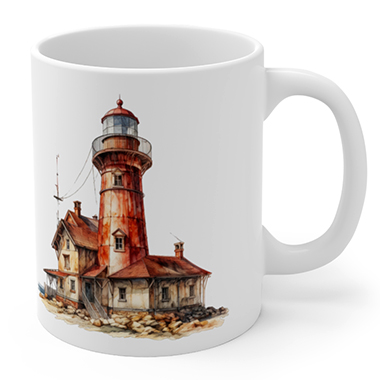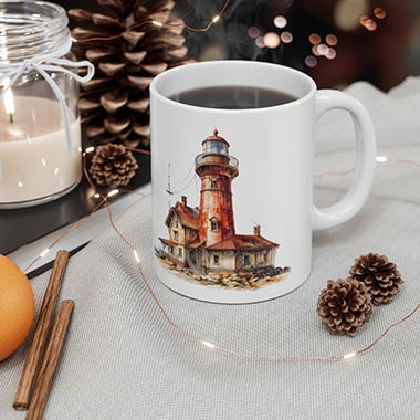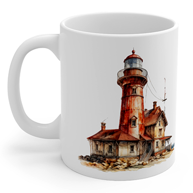 coffee mug features A Fantasy Lighthouse Number 1