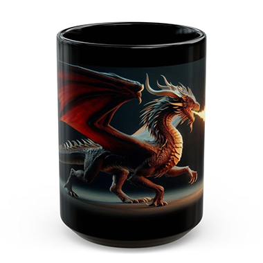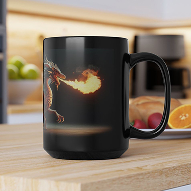 coffee mug features A Fire Breathing Dragon