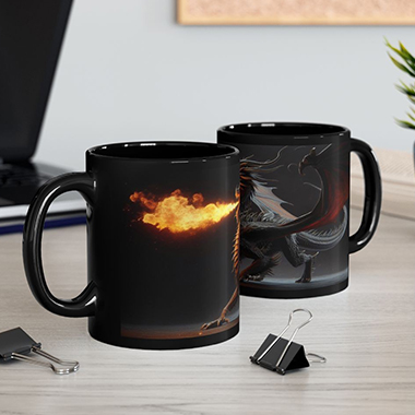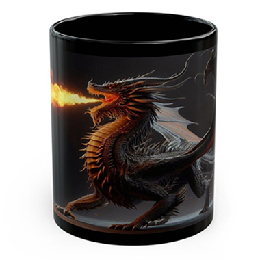 coffee mug features A Fire Breathing Dragon