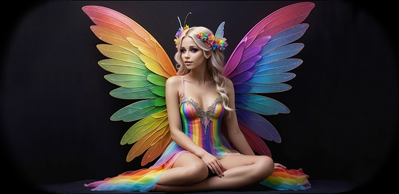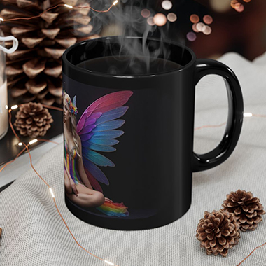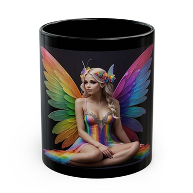 coffee mug features A Rainbow Winged Fairy