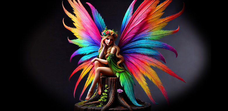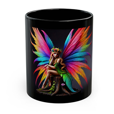coffee mug features A Rainbow Winged Fairy