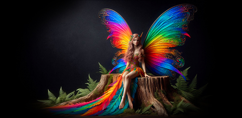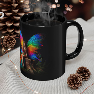 coffee mug features A Rainbow Winged Fairy
