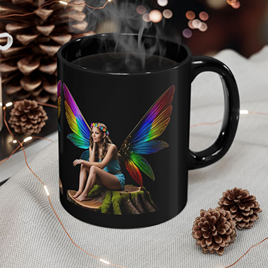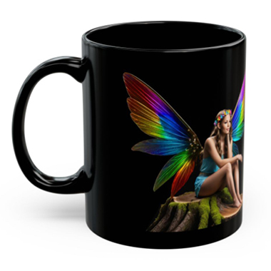 coffee mug features A Rainbow Winged Fairy